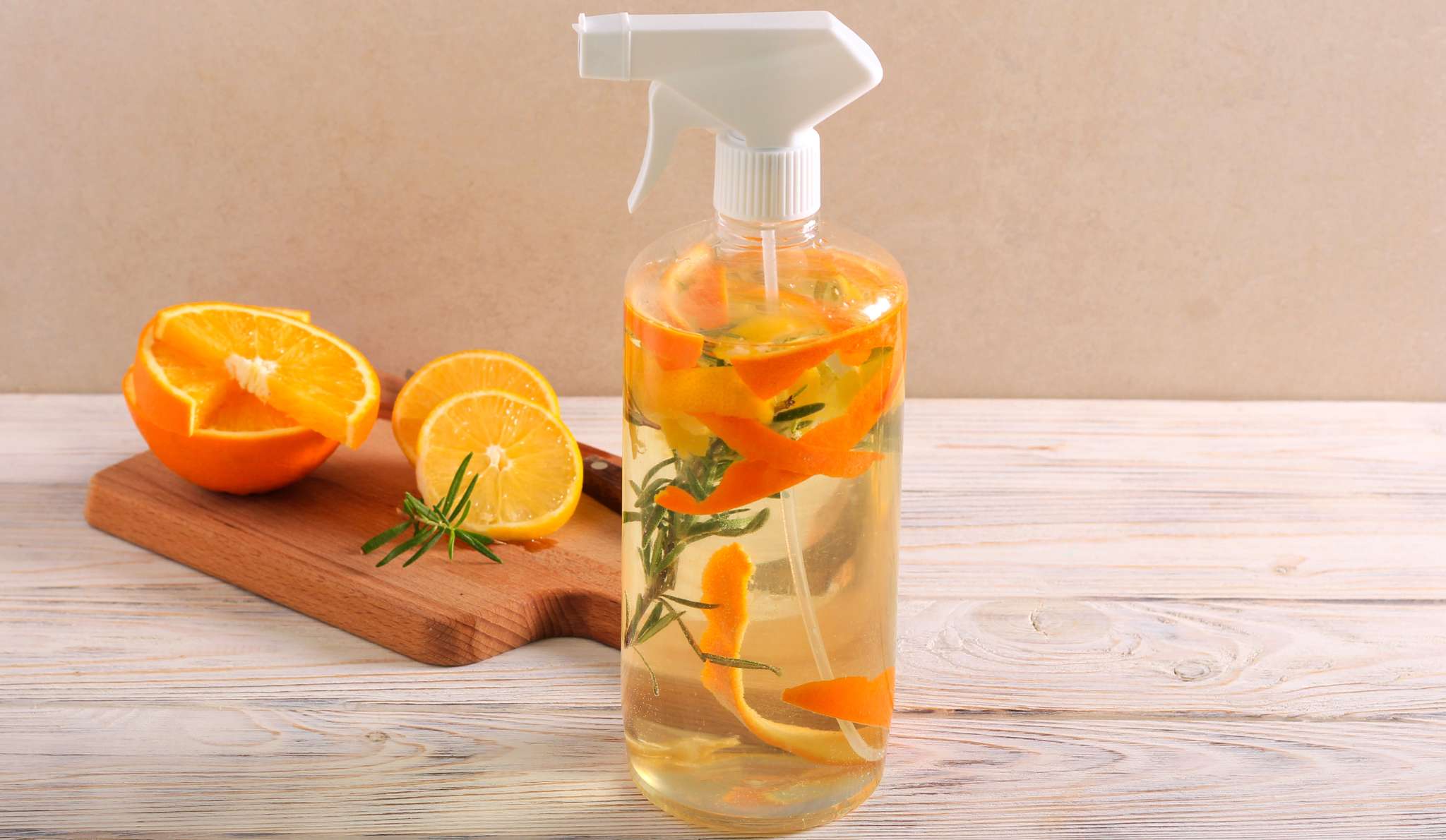 Instructions: Mix the vinegar and water in a spray bottle, then add the citrus peel and essential oil of your choice for a pleasant scent. Shake well before each use. This all-purpose cleaner works wonders on countertops, glass surfaces, and tile floors.