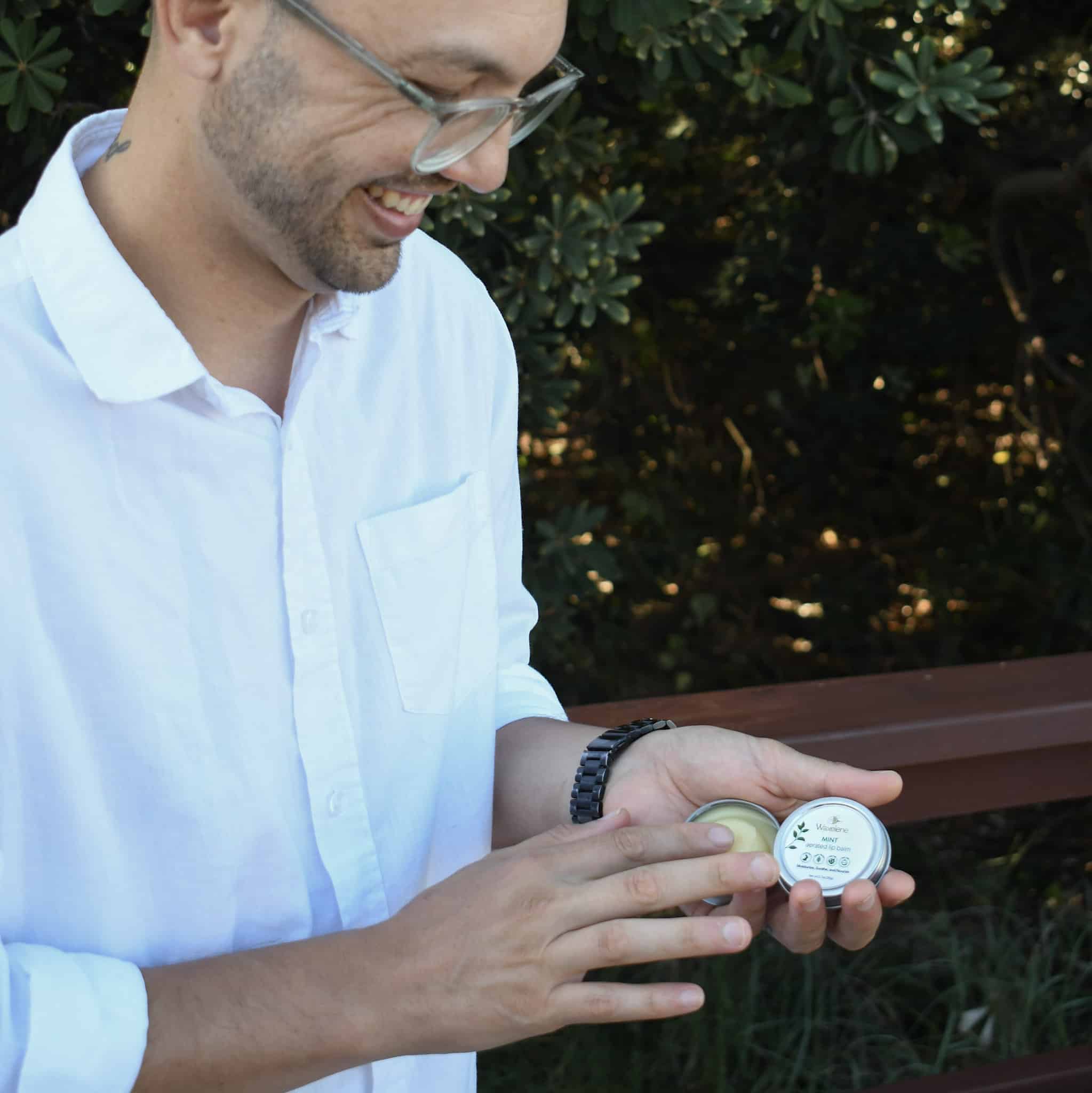 Apply the Aerated Balm directly to your lips, under eyes, or cuticles using our convenient tin.
